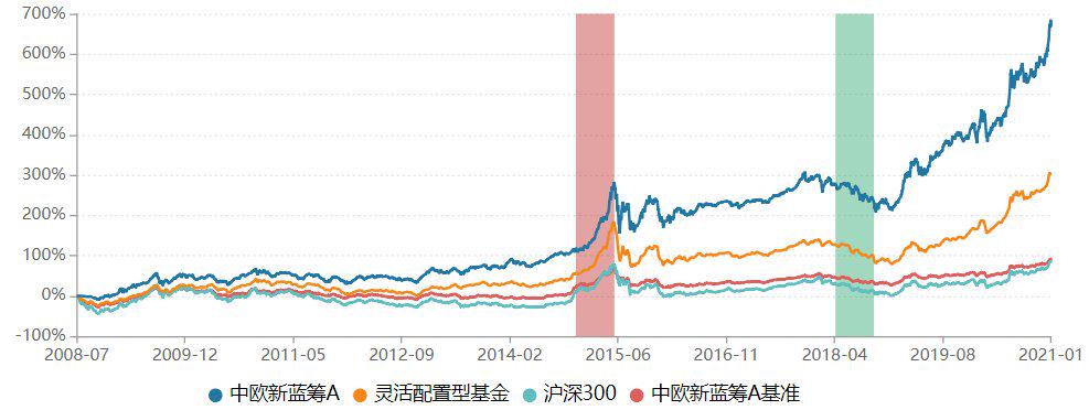 中欧新蓝筹A基金经理周蔚文现任中欧基金投资总监,具有较强的行业配置能力,中长期业绩优秀。自2011年5月起开始掌管中欧新蓝筹A,如今任职已近十年。随着行业人才流动加快,掌管一只产品十年的基金经理,在业内并不多见。Wind数据显示,截至2021年1月14日,其管理中欧新蓝筹A的累计任职回报为411.03%,年化回报为18.4%。该基金曾两次获得业内权威的“金牛奖”。