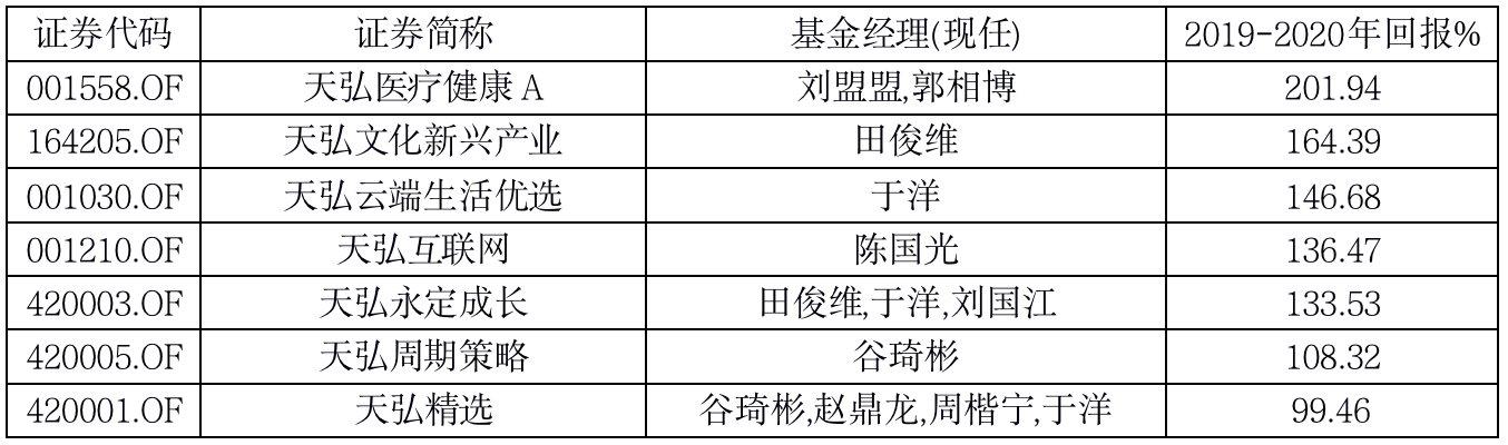 天弘基金7只主动权益产品2019-2020年平均收益率超140%