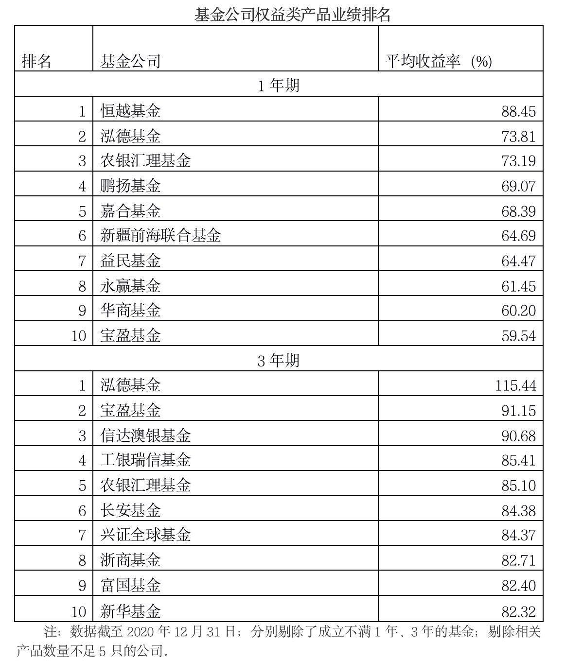 在研究过程中,对1年、3年业绩统计时分别剔除了成立不满1年、3年的基金。在此基础上,对各基金管理机构旗下权益类基金、偏债型基金和QDII基金的1年期、3年期业绩分别进行平均计算。