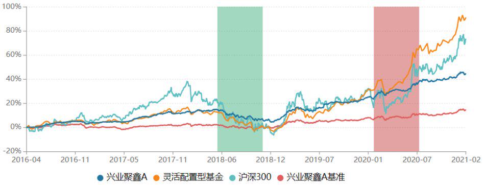 单只管理规模超过10亿元的兴业聚鑫A,截至2月3日,今年以来、近一年、近两年、近三年的净值增长率分别为0.65%、16.97%、33.11%、27.53%,同类排名分别为1720/1997、1632/1888、1438/1805、1234/1579。