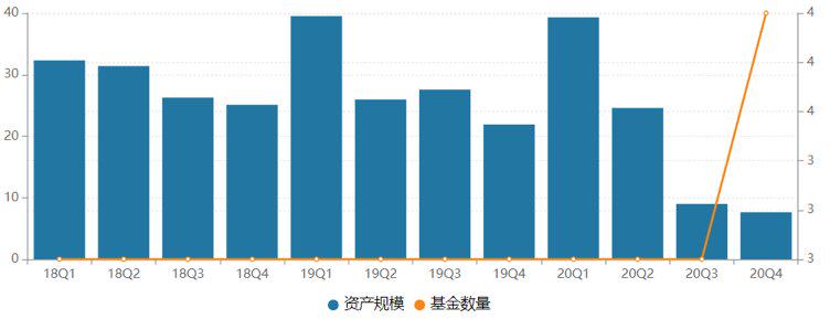 截至2020年末,新沃基金管理规模跌至个位数,仅为7.63亿元,较2019年降幅高达65.17%,近四年该公司仅成立一只新基金