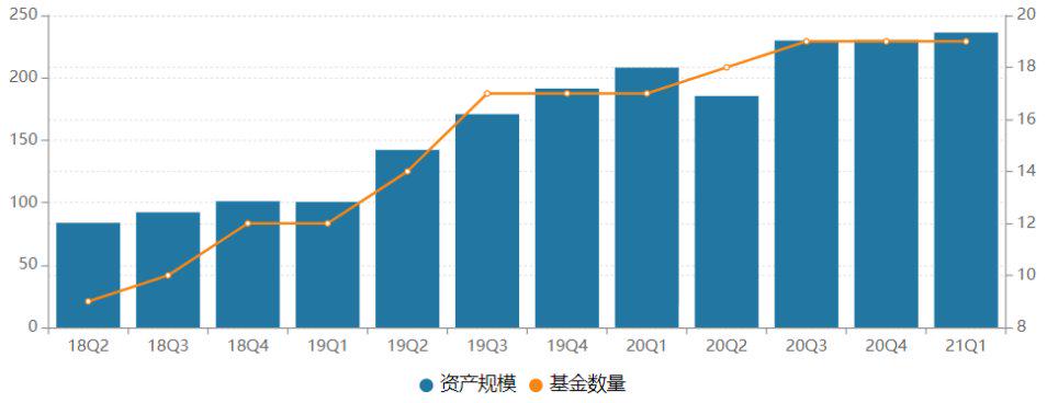 从管理规模来看,截至今年一季度末,华泰保兴基金管理规模为236.26亿元,非货币型基金规模为153.89亿元,其中债券型基金、股票型基金、混合型基金规模分别为106.11亿元、44.7亿元和3.09亿元。