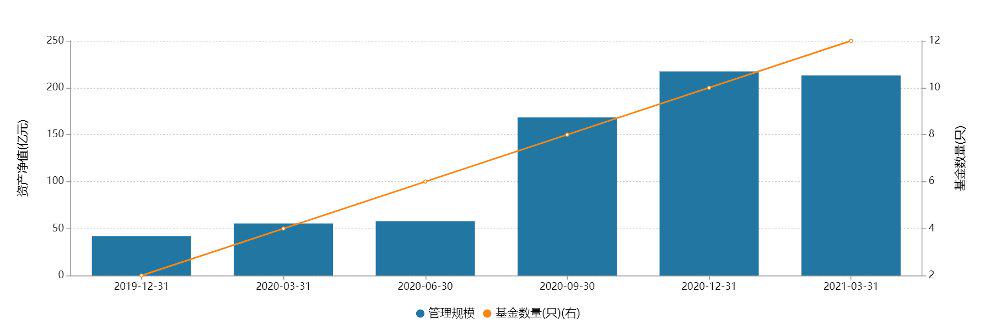 在蒋宁任职期间,惠升基金管理规模成功跨越200亿元。Wind数据显示,截至今年一季度末,惠升基金管理规模为213.11亿元,较去年末的217.38亿元缩水4.27亿元,降幅为1.96%。