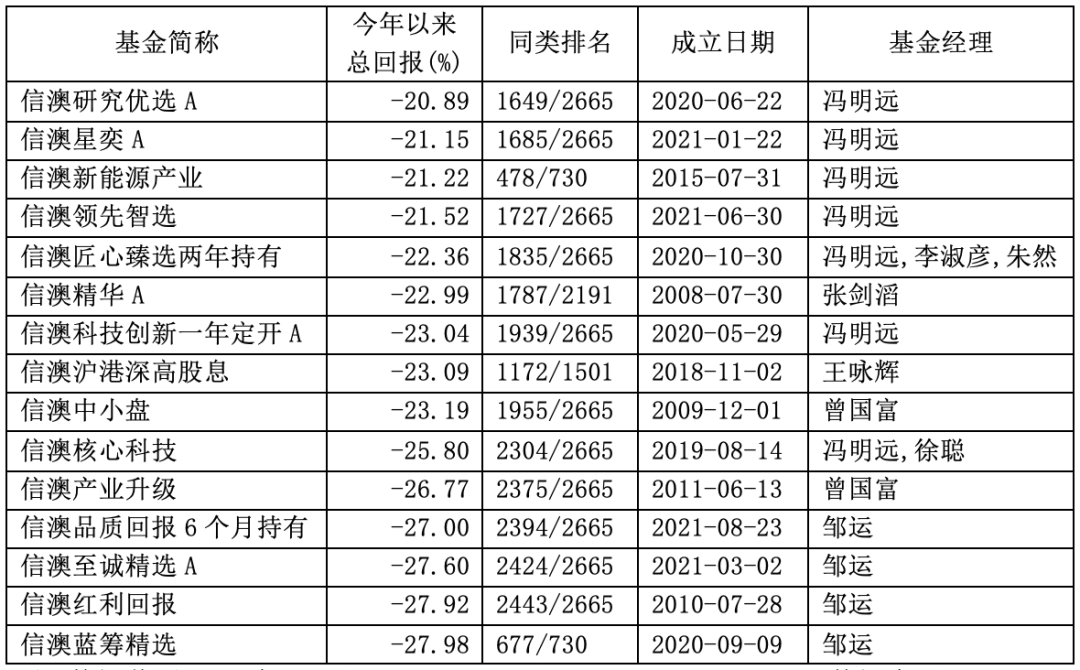 信达澳亚基金旗下年内净值跌幅超20%的基金