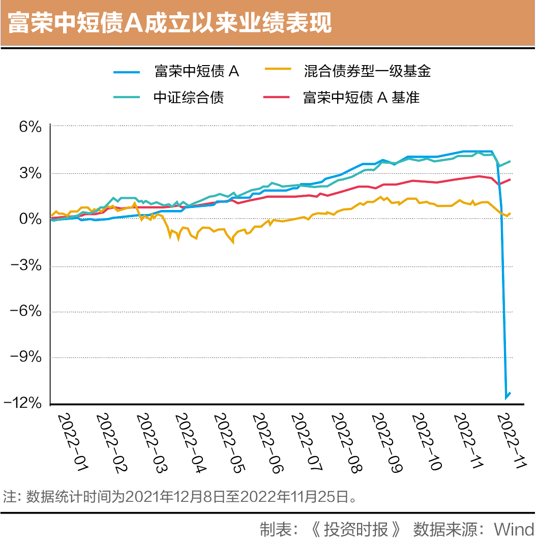 在本轮震荡中,富荣中短债A业绩深陷漩涡,净值下跌15.24%,在可统计数据的债券型基金中跌幅居首。