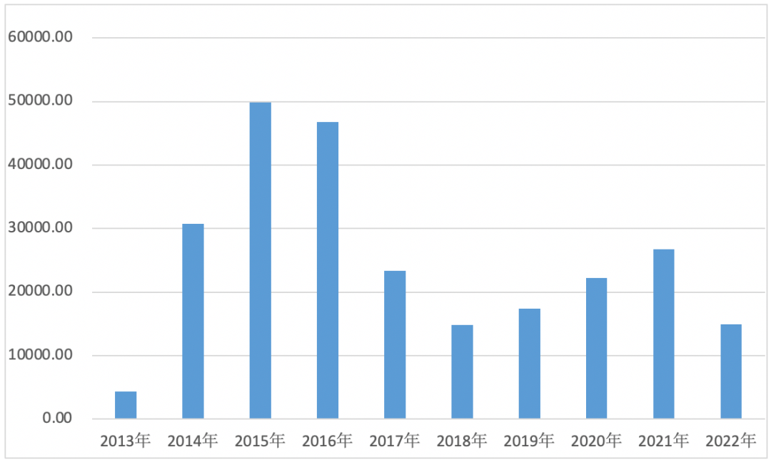 众所周知,管理费是基金公司收入的重要组成部分。Wind数据显示,2022年民生加银基金的管理费为6.76亿元,较2021年的9.3亿元缩水2.54亿元,降幅为27.31%。需要指出的是,2021年管理费收入也是该公司过去十年(2013年至2022年)这一数据的峰值。