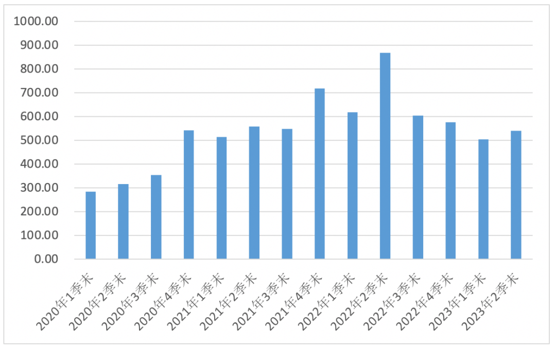 新华基金2020年至2023年二季度末规模情况(亿元)