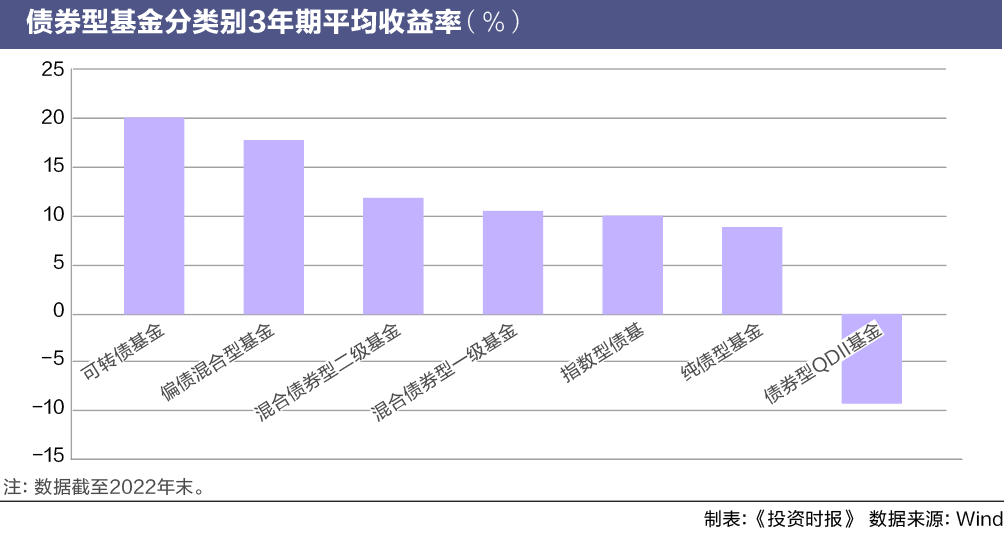 《投资时报》研究员通过Wind数据发现,截至2022年末,华商丰利增强定开A在过去三年固定收益类基金中表现最好,收益率为102.66%,而民生加银鑫享A、嘉合磐石A等58只产品收益率告负;国富中国收益以105.19%的收益率成为过去五年成绩最佳的基金,华商双债丰利A则居末尾,收益率为-51.13%;过去七年收益率翻倍的基金有2只,同期净值跌幅超过20%的产品有4只。