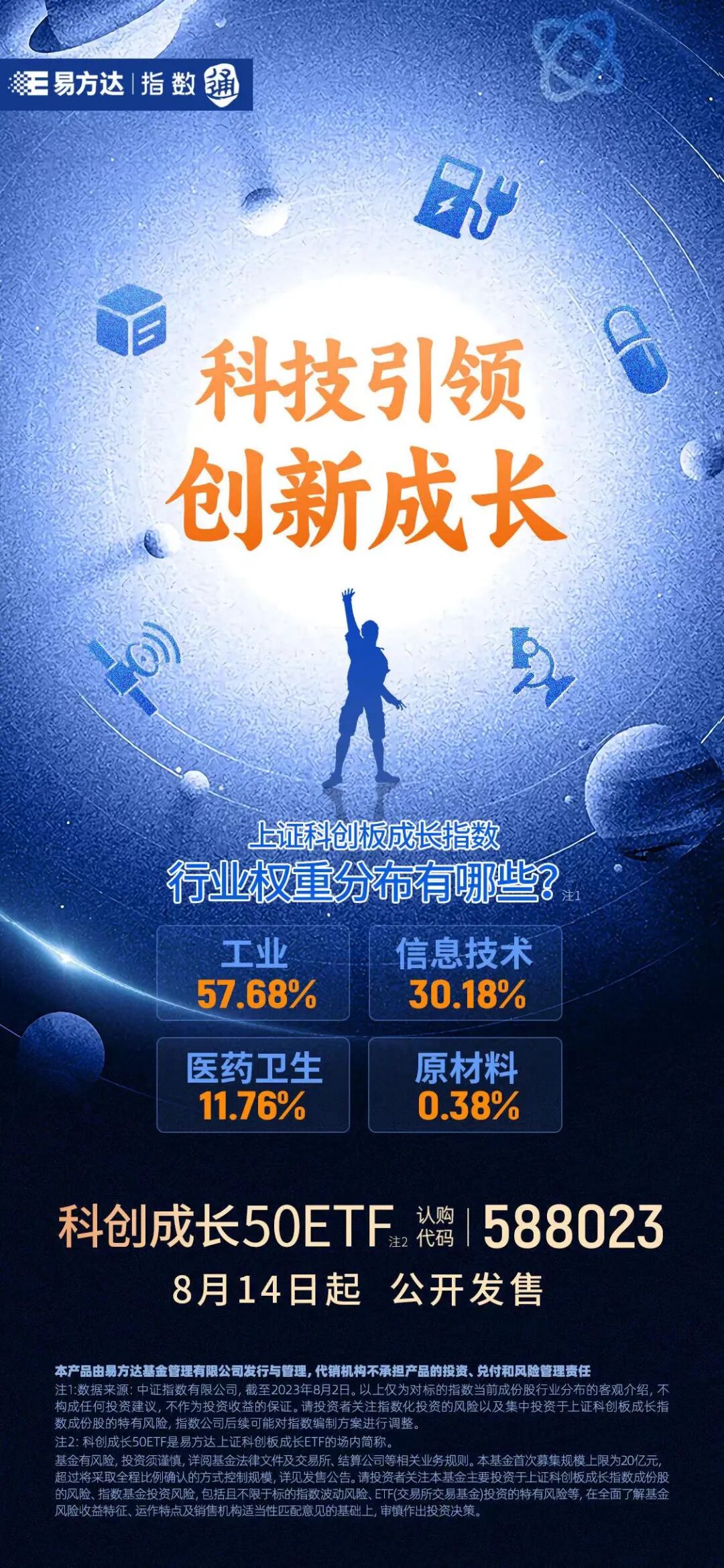 8月14日,易方达上证科创板成长ETF(代码:588023)等2只跟踪上证科创板成长指数(以下简称“科创成长指数”)的基金产品正式发行。这是首批跟踪科创成长指数的ETF,将为投资者布局科创板提供更多选择。