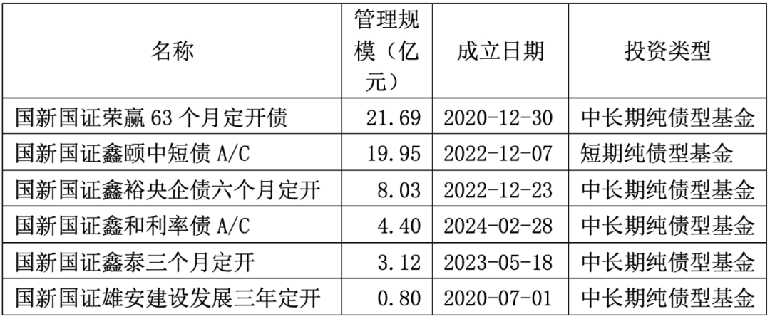 注:国新国证鑫和利率债规模为首募规模,其他产品规模统计截止时间为2023年末。