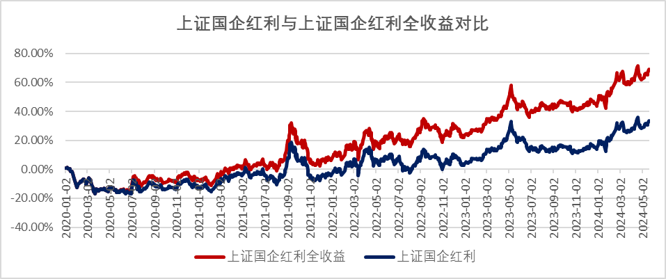 红利国企ETF标的指数为上证国企红利(000151.SH)。如果把上证国企红利(不含成分股红利再投资收益)和上证国企红利全收益(包含成分股红利再投资收益)进行对比,可以看出,成分股分红带来的超额收益还是非常显著的。