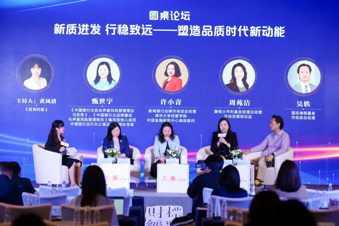 此次论坛上,四位来自金融领域的重量级嘉宾围绕《新质迸发 行稳致远——塑造品质时代新动能》展开圆桌讨论。摩根士丹利基金助理总经理、市场发展部总监周苑洁分享了声誉风险管理、品牌公关建设等方面的经验。