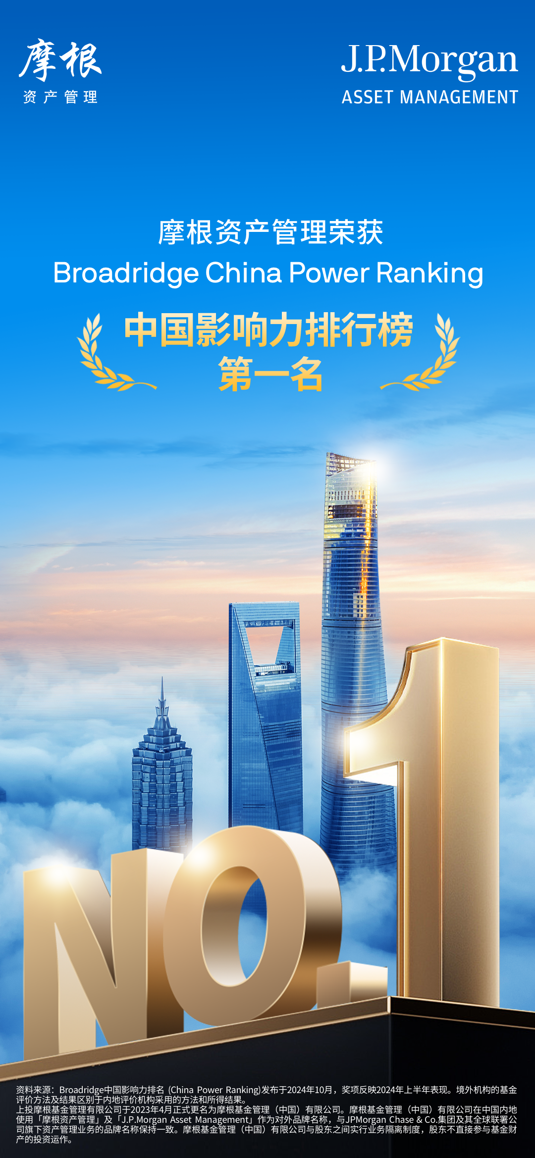 2024年10月,知名咨询公司Broadridge发布了外资资产管理公司在中国市场的综合实力排名报告。凭借稳健的综合实力,多年深耕中国的本土经验和深受客户肯定的品质服务,摩根资产管理在Broadridge“中国影响力排名”(China Power Ranking)中再次荣登榜首!