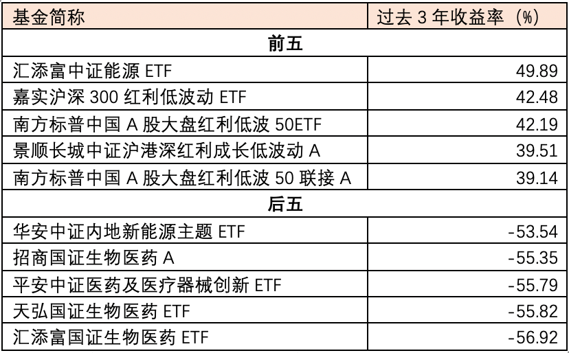 指数型基金过去3年收益率的榜首则是被汇添富中证能源ETF夺得,该基金收益率为49.89%。