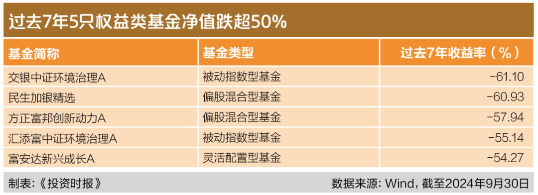 尽管不少权益类基金在过去7年取得了亮眼的成绩,但也有部分产品表现欠佳。