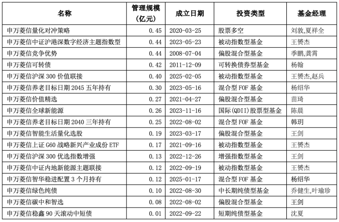 2025年二季度末申万菱信旗下规模不足5000万元的基金