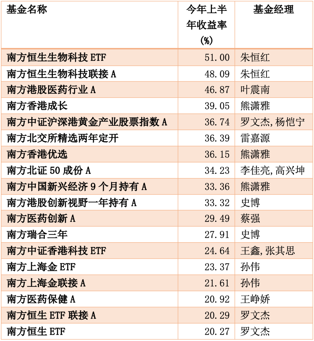 南方基金旗下18只权益类基金今年上半年收益率超20%