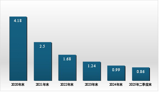 业绩持续欠佳,规模也随之“瘦身”。民生加银优选的管理规模在2020年末为4.18亿元,2021年末—2024年末依次为2.5亿元、1.68亿元、1.24亿元、0.99亿元,2025年二季度末进一步缩水至0.86亿元。