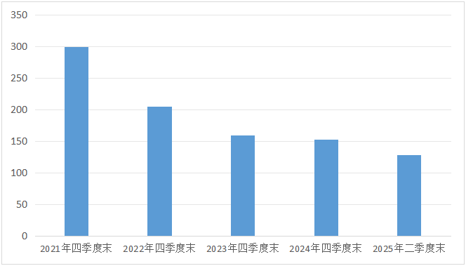 或受业绩表现的影响,兴全趋势投资管理规模整体呈下滑趋势。据Wind数据统计,2021年末—2025年二季度末,该基金管理规模分别为298.8亿元、205.32亿元、159.08亿元、152.66亿元、127.87亿元。