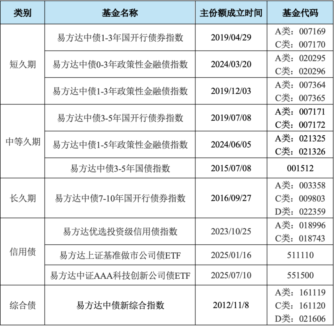 易方达债券指数基金产品线