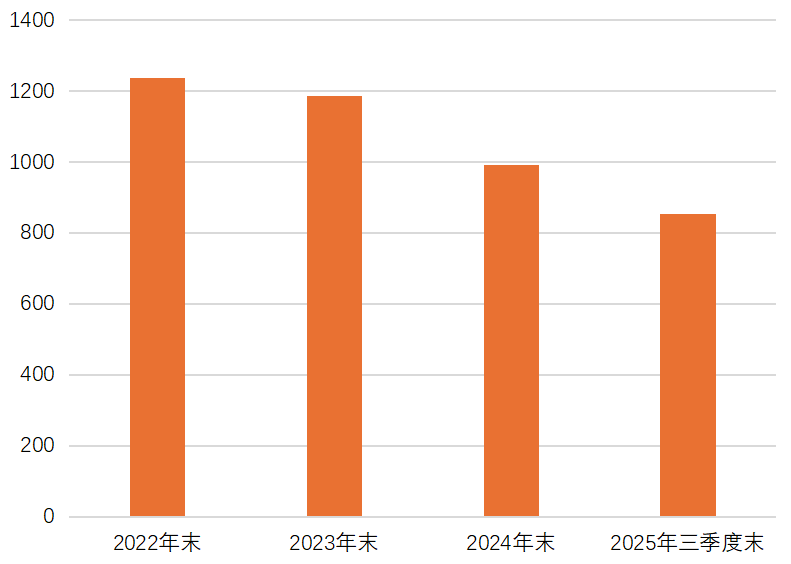 投资时间网、标点财经研究员还注意到,安信基金管理规模自几年前便开始下降。Wind数据显示,安信基金的管理规模于2021年第四季度首次迈进千亿行列,并于2022年三季度末到达1364.91亿元这一阶段性峰值,随后开始逐步下行。2022年末—2024年末,该公司管理规模依次为1236.8亿元、1185.84亿元、992.75亿元。继2024年跌出千亿梯队后,今年进一步下滑。