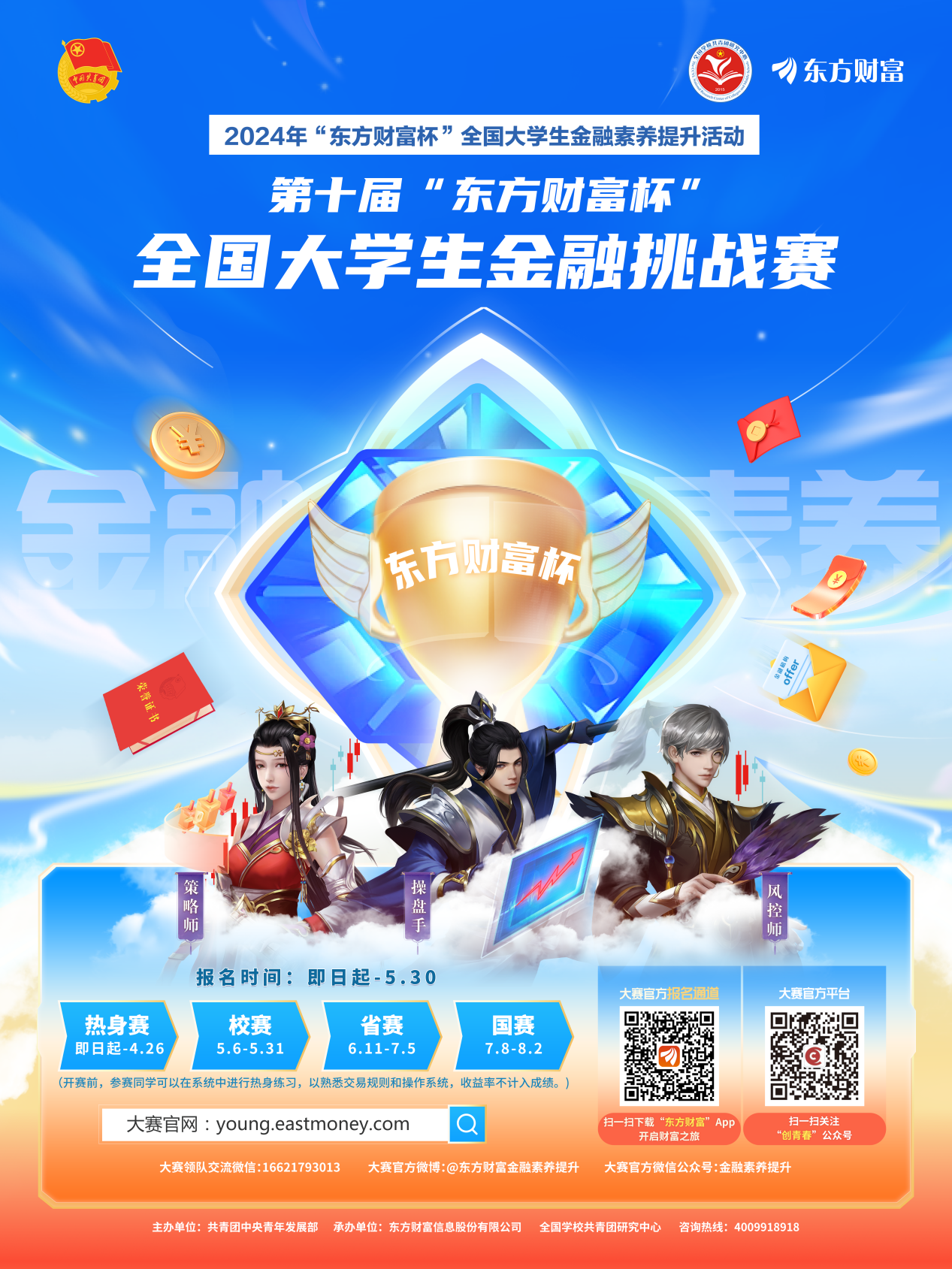 第十届“东方财富杯”全国大学生金融挑战赛,作为“东方财富杯”全国大学生金融素养提升活动的重要内容,已正式启动。