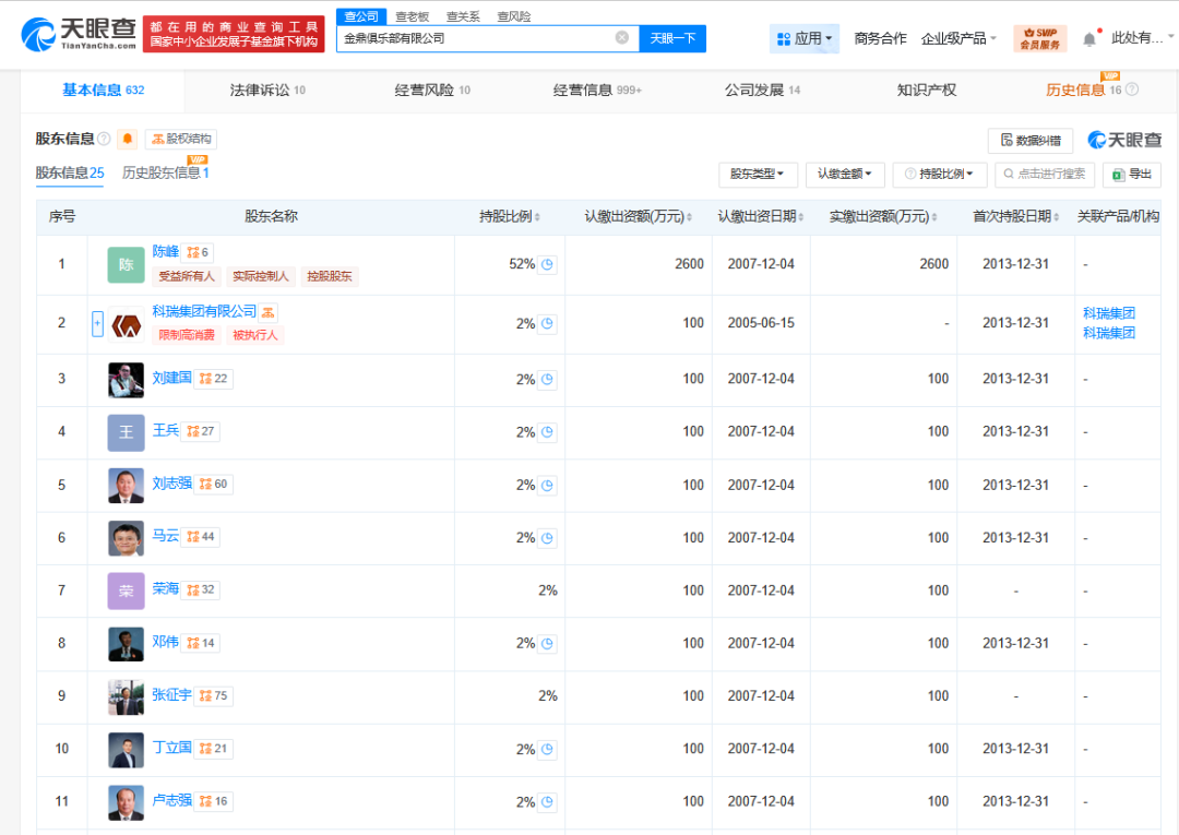 天眼查App显示,近日,金鼎俱乐部有限公司因未依照规定的期限公示年度报告,被海口市市场监督管理局列入经营异常名录。