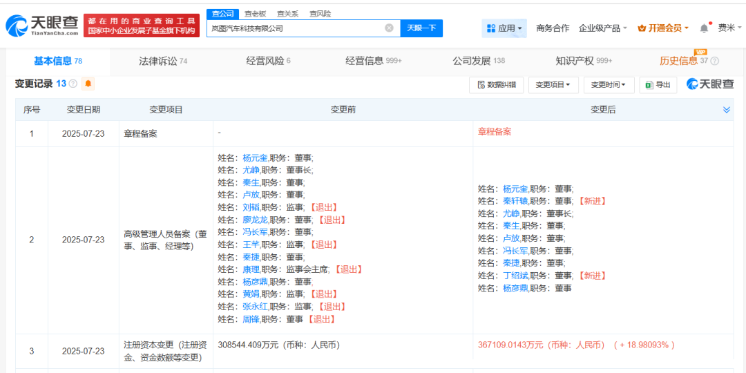 岚图汽车注册资本由约30.9亿人民币增至约36.7亿人民币,原股东赣锋锂业等退出