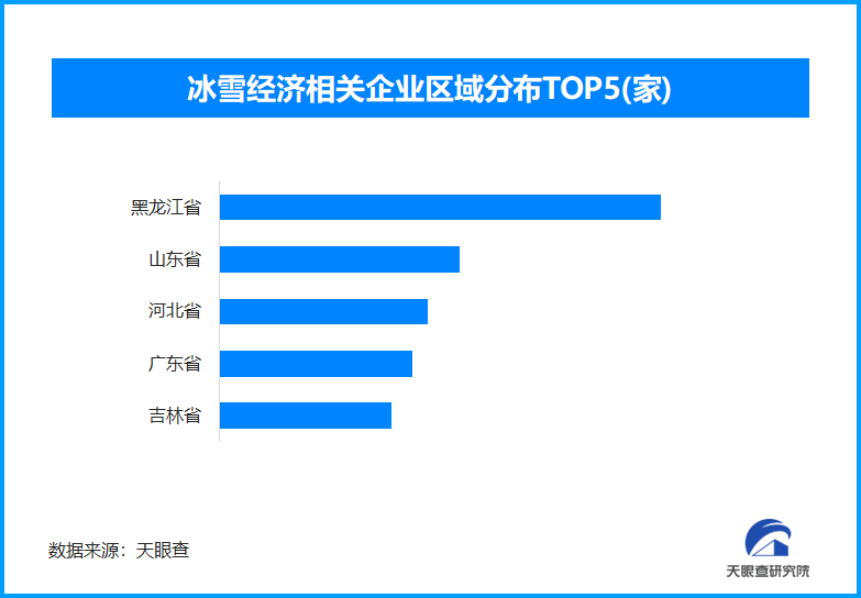 天眼查专业版数据显示,截至目前我国现存在业、存续状态的冰雪经济相关企业超2.6万家。从区域分布来看,黑龙江省冰雪经济相关企业数量位居首位,以超3800余家数量占全国总数的14.68%。排在其后的是山东省和河北省,值得一提的是,广东省为唯一上榜南方省份,冰雪经济相关企业数量为超1600余家。
