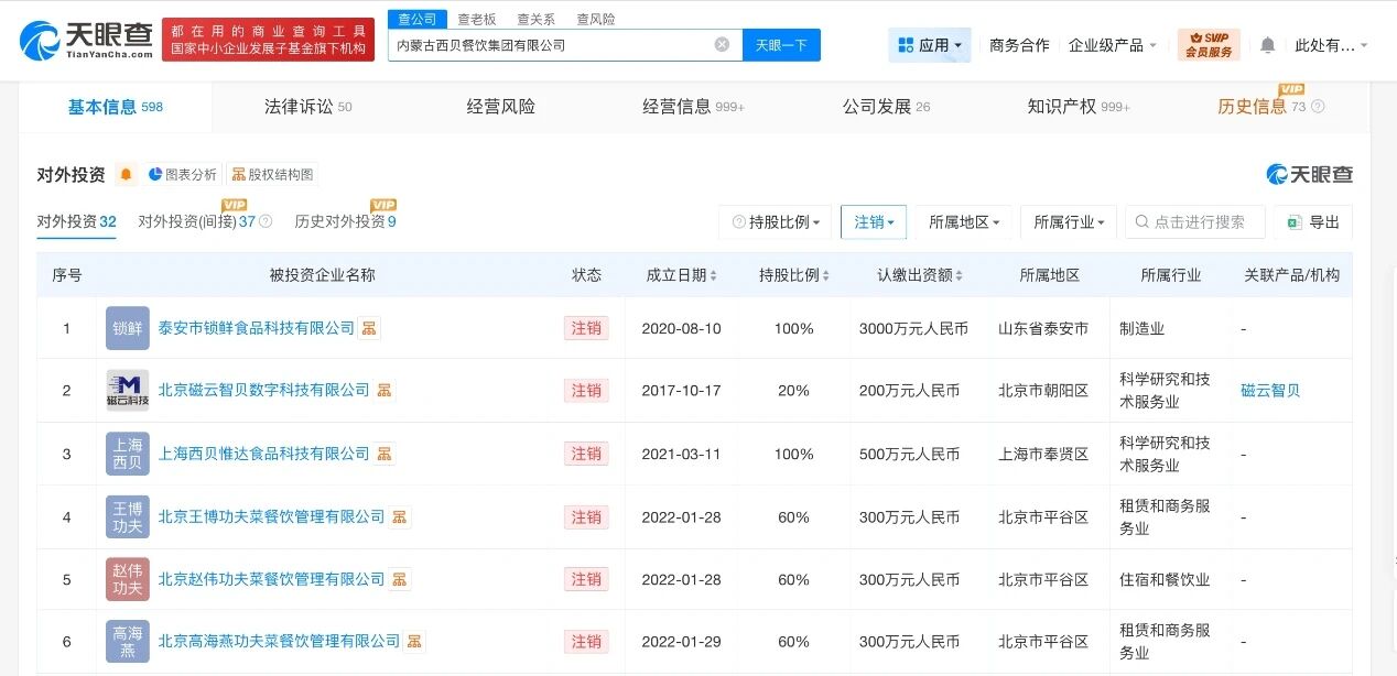 值得一提的是,近期,西贝旗下多家企业注销,包括北京西贝畅行寰宇餐饮管理有限公司、上海西贝麦香餐饮管理有限责任公司等。