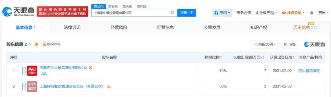 新公司均由内蒙古西贝餐饮集团有限公司、上海好持餐饮管理合伙企业(有限合伙)共同持股