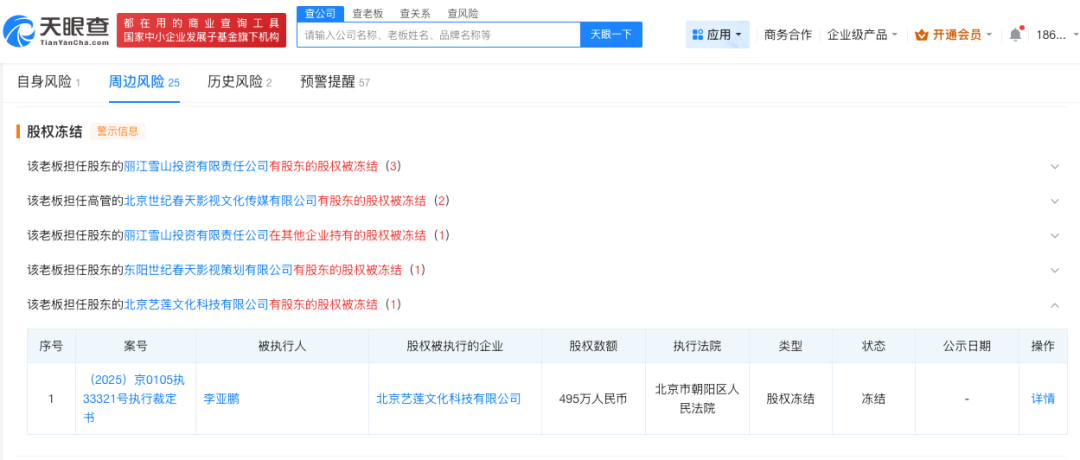 李亚鹏商业版图揭秘:多家公司已被冻结股权