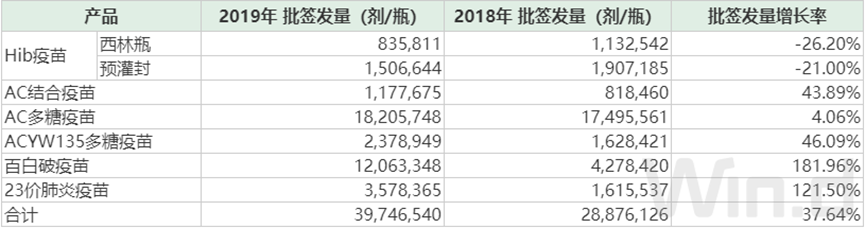 沃森生物主要疫苗产品近两年批签发量情况
