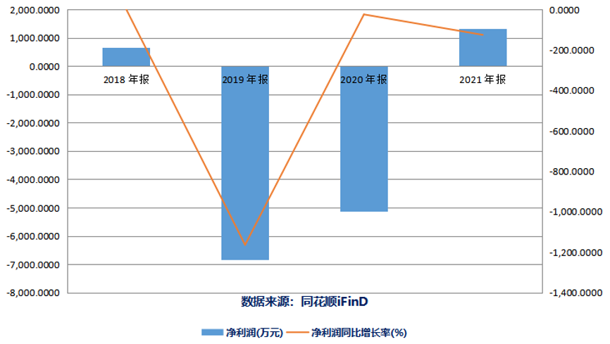 2018年至2021年,该公司分别实现营业收入3.45亿元、1.44亿元、1.5亿元和2亿元;分别实现净利润643.34万元、-6843.03万元、-5124.83万元和1327.69万元。可见,公司主业表现低迷,扣非净利润也连续处于亏损状态。