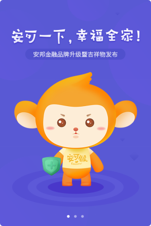 安邦金融吉祥物“安可猴”一经推出即受到用户的无数喜爱。在中国传统文化中,猴文化不仅古老,而且丰富,猴的形象寓意着机敏好动、神通变化、正能量,它们是群居动物,内部团结,能够齐心协力完成目标,团队的凝聚力也代表着品牌的实力。安邦金融吉祥物“安可猴”来自“Encore”的音译,意指安邦金融的可信、可爱、可人。“安可”头上的小翅膀造型,代表着速度感和力量,象征着安邦金融响应用户需求的高质量和高速度;“安可”颜色是金黄而有活力的,寓意吉祥财富,代表着安邦金融可以为用户带来更美好的生活。