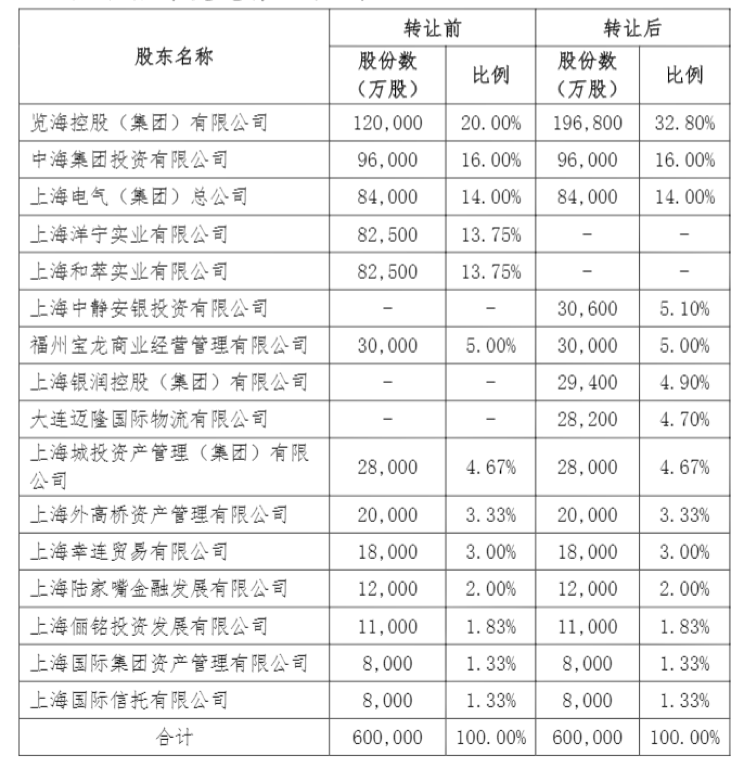 上海人寿股东变更前后对照表
