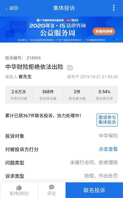 聚投诉网站关于中华财险的投诉截图