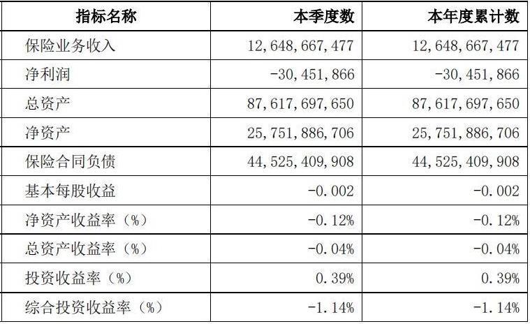 大地保险偿付能力报告显示,今年一季度,该公司保险业务收入为126.49亿元,同比增4.69%;净利润为-3045.19万元,上年同期为3.41亿元。