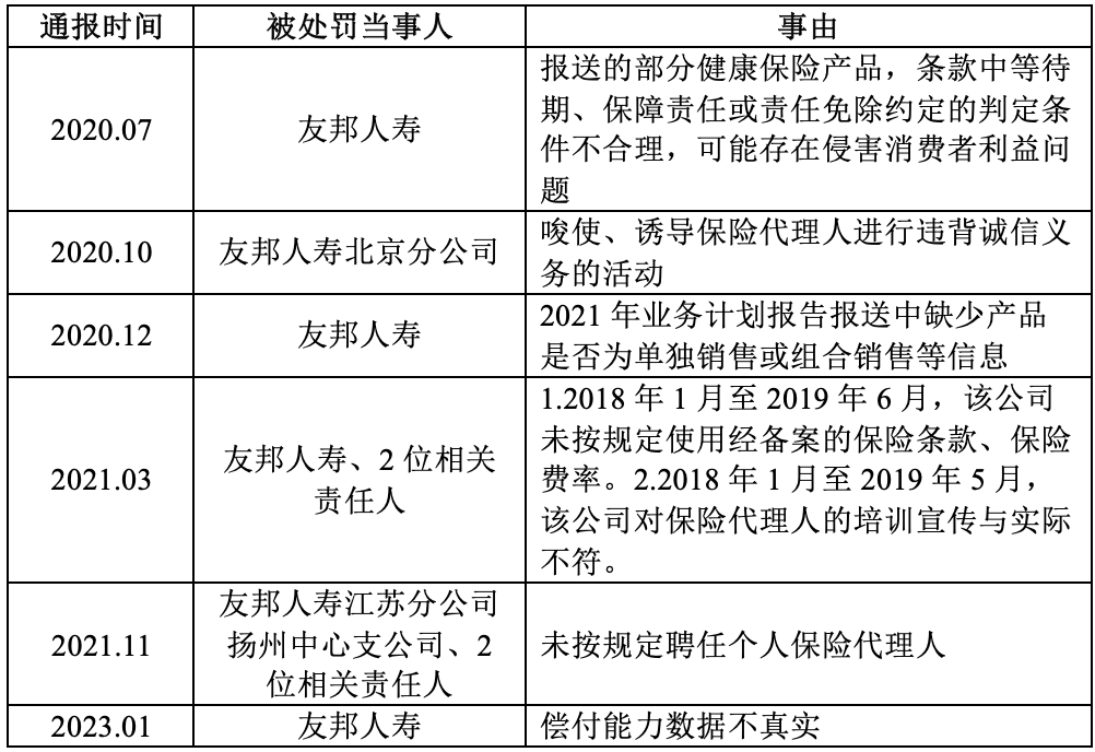 据不完全统计,友邦人寿自2020年7月改建成立以来,已遭银保监会6次“点名”。