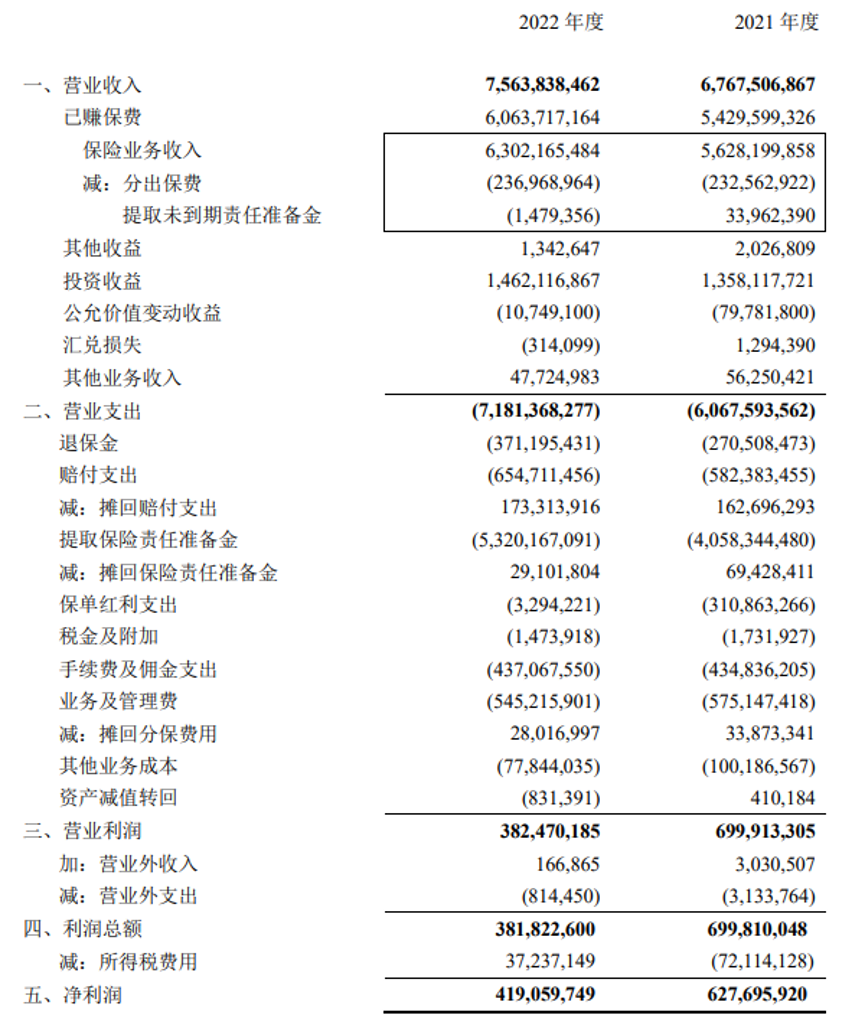 同在4月下旬披露的年报显示,安联人寿业绩陷入增收不增利的尴尬局面,2022年营业收入同比增长11.77%,但净利润同比减少33.24%。《投资时报》研究员注意到,该公司退保金、提取保险责任准备金等支出项目出现较大幅度增长,成为净利润有所压缩的重要因素。