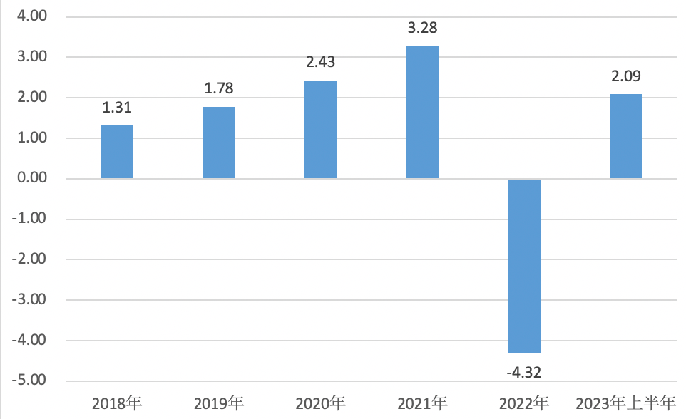 2018年—2023年上半年英大泰和人寿归母净利润表现(亿元)