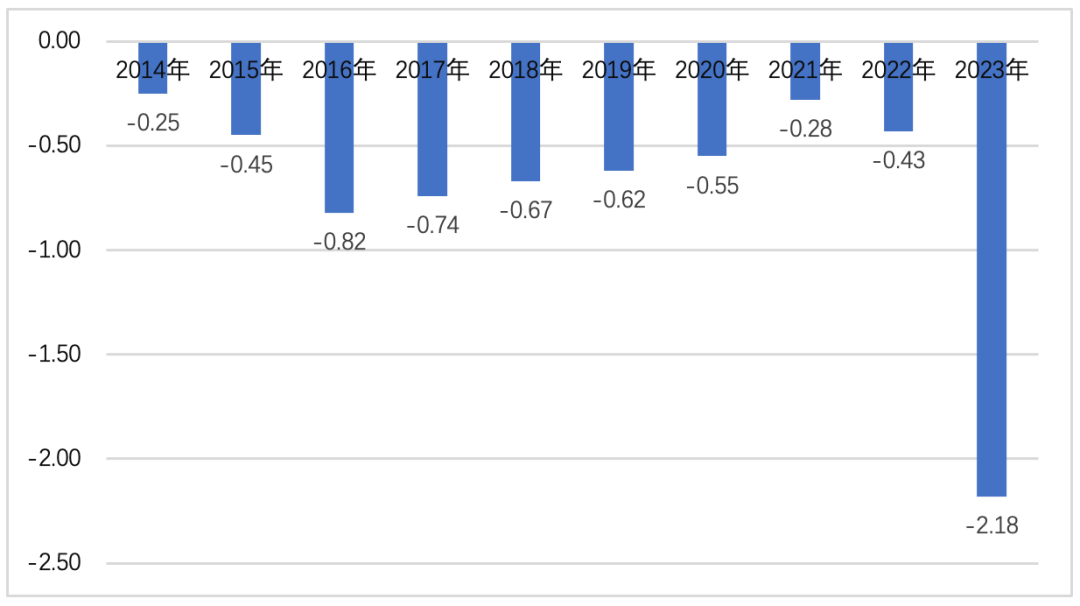 从过往的年度信息披露报告可以看到,2014年—2023年,小康人寿的净利润依次为-0.25亿元、-0.45亿元、-0.82亿元、-0.74亿元、-0.67亿元、-0.62亿元、-0.55亿元、-0.28亿元、-0.43亿元、-2.18亿元,合计为-6.99亿元。可以看出,增资完成后的2021年—2023年,小康人寿依旧延续着之前的亏损状态,且2023年亏损额远超此前年度。