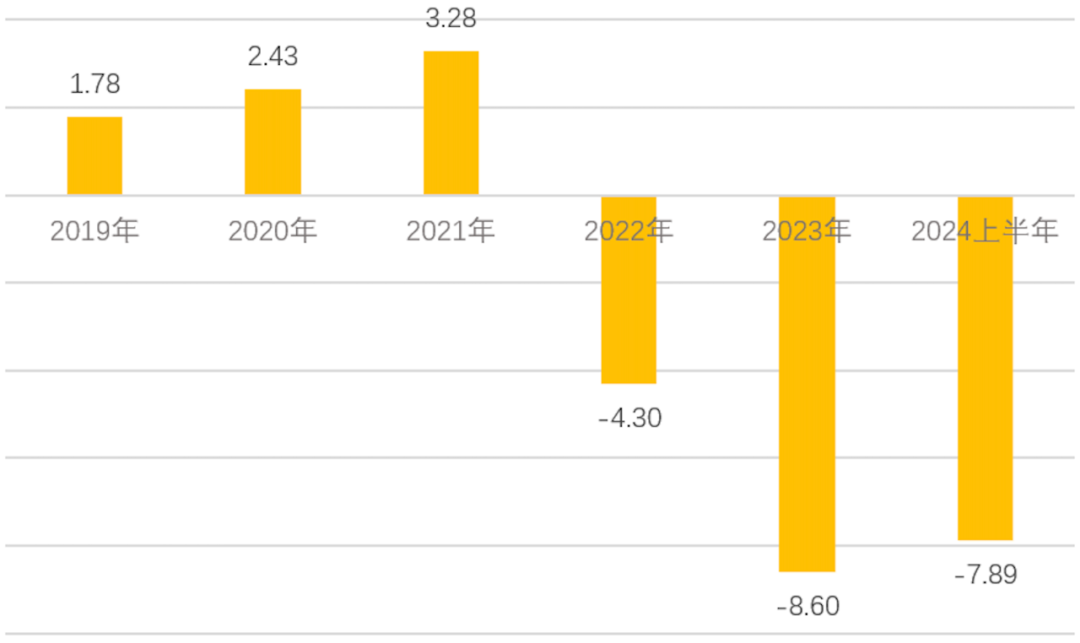 根据英大泰和人寿过往的年度信息披露报告,2019年—2023年,该公司的归母净利润依次为1.78亿元、2.43亿元、3.28亿元、-4.30亿元、-8.60亿元。