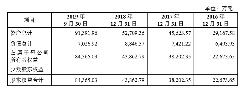 值得注意的是,瑞丰新材2019年1—9月的总资产(9.14亿)较2018年整年(5.27亿)比较上升了73.43%,归属于母公司的所有者权益上升了92.26%,原因为2019年9月该公司引入新的投资者中国石化集团资本有限公司向公司投入货币资金3.4亿元,这也导致对公司IPO之前故意扩大资产的质疑。