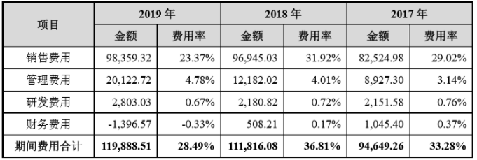 注:费用率指各项期间费用占当期销售收入的比例 数据来源:公司招股书