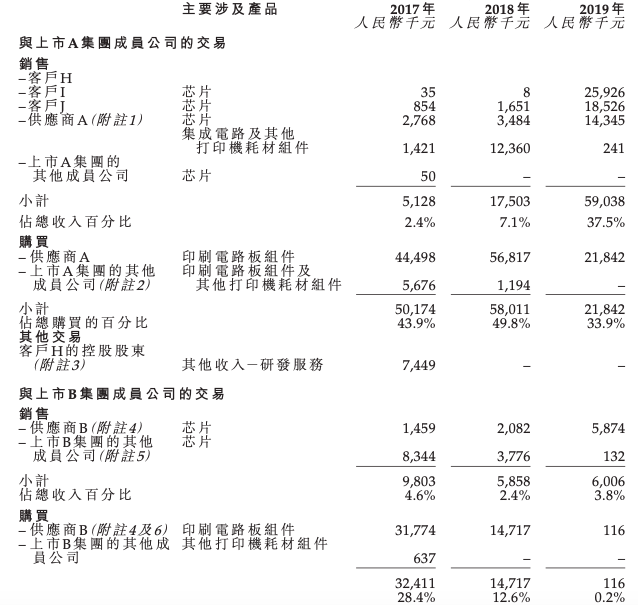 招股书显示,美佳音主要重叠客户供应商为上市A集团与上市B集团。其中,上市集团A为中国最大的兼容打印机耗材制造商和最大的兼容打印机耗材芯片供应商,按2019年的外部销售计,其市场份额分别超过40%和约41.5%。上市集团B的控股公司为A股上市公司,也是排名领先的兼容打印机耗材制造商和兼容打印机耗材芯片供应商,按2019年外部销售计,其市场份额占比分别超过10%及约9.2%。而上市集团A及上市集团B均为美佳音的竞争者,其于中国从事生产及销售印刷电路板组件、兼容打印机耗材芯片及兼容打印机耗材的业务。报告期内,因成本效益,美佳音会向前述两大集团购买印刷电路板组件,同时,这两大集团也会向美佳音购买兼容打印机耗材芯片。