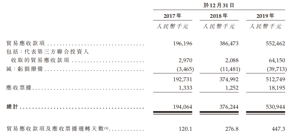 值得注意的是,报告期内力天影业的应收账款周转天数直线上升,其应收款项在2019年度已明显超越同期营收。据招股书显示,该公司贸易应收款项分别为1.93亿元、3.75亿元及5.13亿元,分别占同期营收的比例为50.92%、97.15%及131.20%,而其同期平均贸易应收款项周转天数分别约为120.1天、276.8天及447.3天。