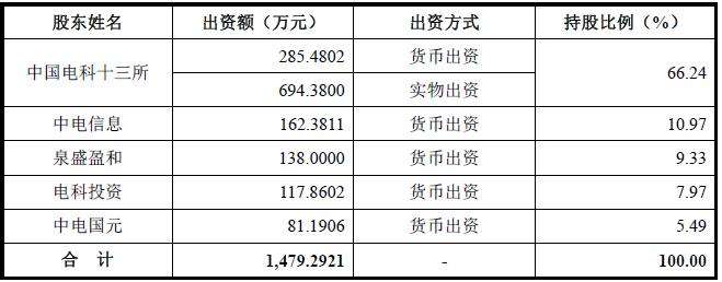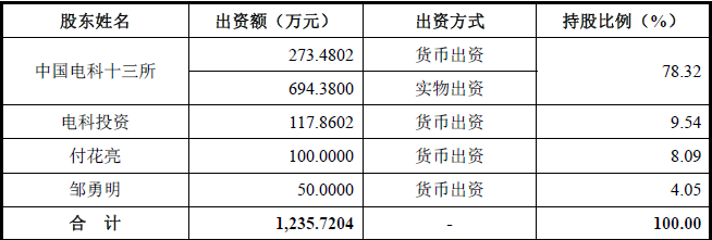 2018年6月20日,中瓷有限决议同意增加电科投资为新股东,中国电科十三所和电科投资分别以货币形式出资5000.00万元。本次增资后,电科投资成为该公司第二大股东,持股9.54%。