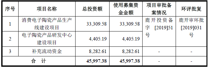 或是由于现有主要收入来源通信器件用电子陶瓷外壳单位毛利率持续走低,招股书中提到目前中瓷电子正在大力开拓消费电子陶瓷外壳这一新兴市场。本次公开募集资金的超70%都将用于消费电子陶瓷产品生产线建设项目。