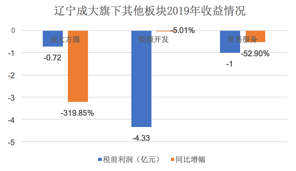 这个曾在2013年募资18.56亿元的项目至今也没能为辽宁成大带来良好的收益。而除了能源开发的新疆项目亏损,2019年辽宁成大的贸易板块收入锐减,负责贸易的企业税前利润仅9975万元,同比降幅高达52.9%。